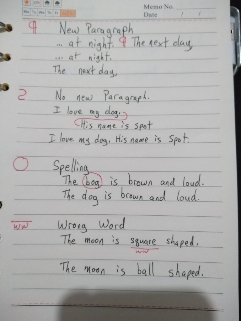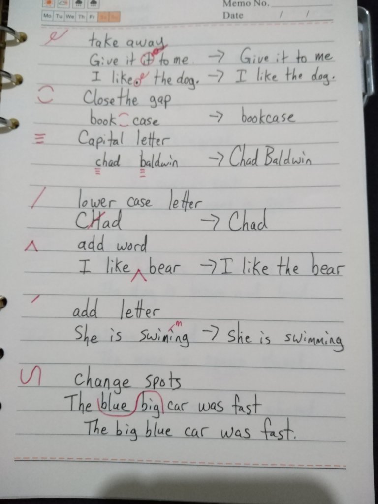 When you have written what you can. Have someone proofread it. Proofreaders may use the code below to help you fix it.